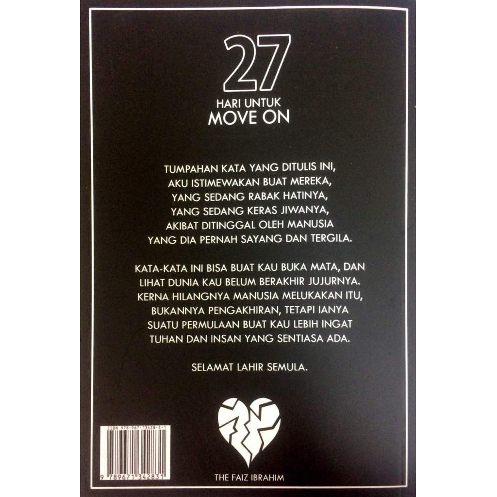 27 hari untuk move on ean no. Buku ini dikarangkan buat insan yang sedang bengkak atau retak hatinya dek kerana ditinggal oleh manusia yang dia pernah sayang sepenuh hatinya. 27 hari untuk move on. By faiz ibrahim 0 27 hari untuk move on ini merupakan sebuah warkah ikhlas daripada aku buat insan yang pernah jadi seperti aku pada suatu ketika dahulu.