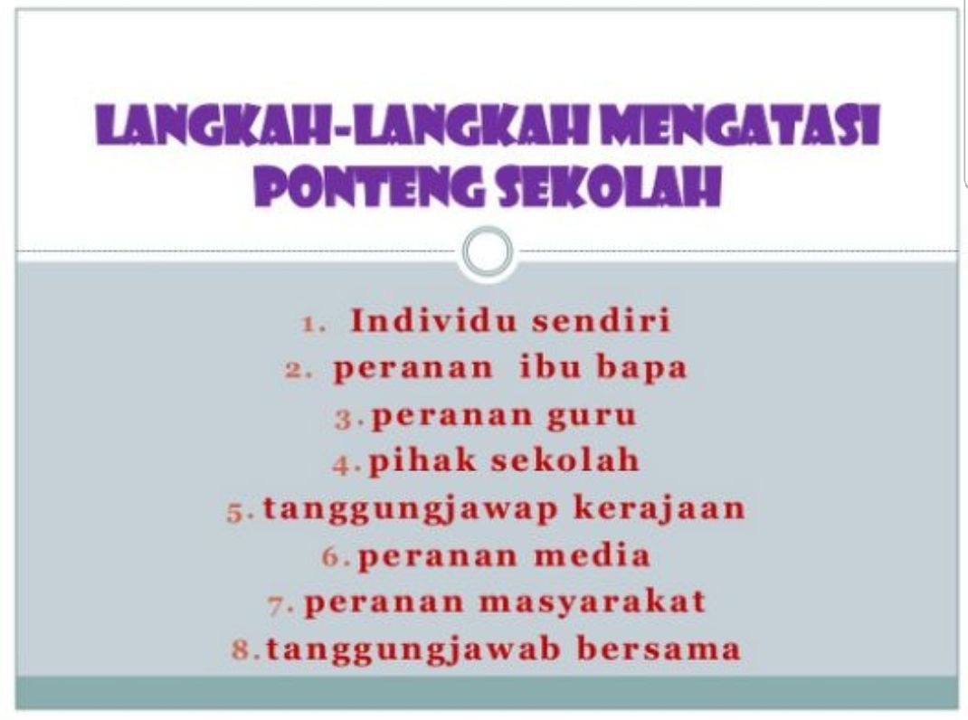 Ibu bapa perlu memberikan kerjasama yang padu kepada pihak sekolah untuk mengatasi fenomena ini. Antara lain ponteng bagaikan satu indikator yang menanda aras kelemahan sistem pendidikan malaysia yang diimplementasikan melalui dasar pendidikan negara dpn. Ponteng merupakan kekangan disiplin yang paling banyak berlaku dan sukar diatasi di sekolah.