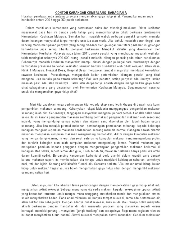 Spm bahasa melayu kertas 1 1103 1 november 2005 bahagian a one of the questions often asked by the candidates is should candidate write the whole essay on the material given or on the topic given. Contoh karangan sebagaimana kita sedia maklum setiap negara di muka bumi bertuah ini memiliki permainan tradisional yang tersendiri. Kebanyakan remaja kini memiliki telefon bimbit. Amalan membaca merupakan amalan yang terpuji kerana membaca dianggap sebagai jambatan untuk menimba ilmu.