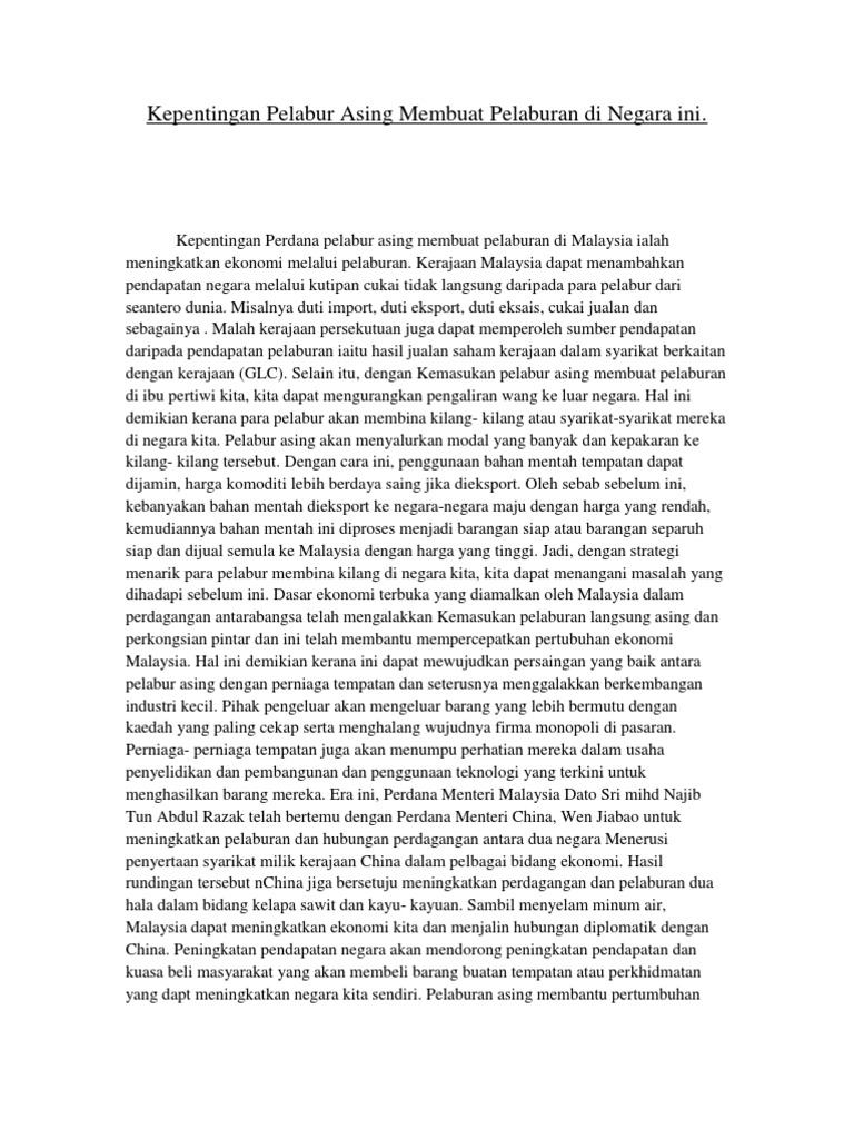 Selain itu kerajaan malaysia melalui kementerian perdagangan antarabangsa dan industri menghantar rombongan perdagangan bagi menarik pelaburan dari luar negara. Menawarkan peluang pekerjaan sekali gus mengatasi masalah penggangguran di kalangan. Ipendidikan karangan faktor faktor yang menggalakkan pelaburan asing di malaysia disemak dan dikemaskini pada pukul 7 26 am 8 mei 2020 tajuk yang berkaitan masyarakat dan negara selalu menjadi pilihan dalam soalan karangan bahasa melayu. Top 5 pilihan pelabur hartanah antarabangsa di asia pasifik.
