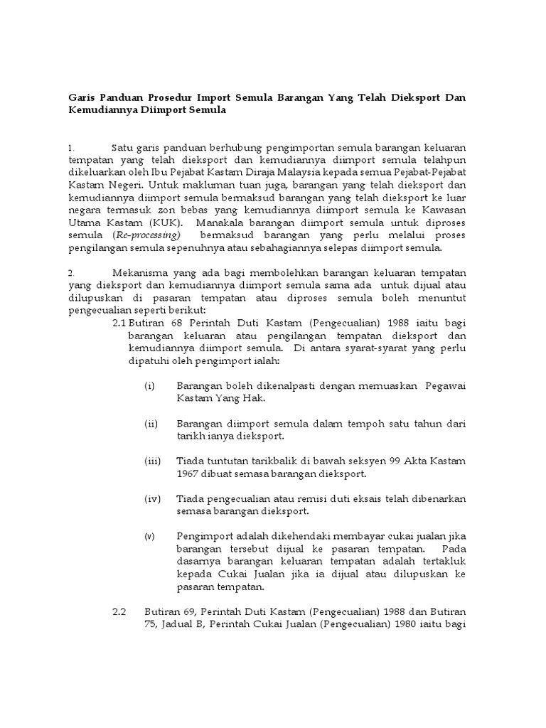 Adalah untuk mengekalkan konsep cukai jualan seperingkat dan memulangkan balik cukai jualan yang telah dibayar berkenaan dengan barang bercukai yang kemudiannya dieksport. Melalui butiran butiran 21 21a 52 58 65 67 114 118 dan 119 perintah duti kastam pengecualian 1988 manakala cukai jualan pula diberi di bawah butiran butiran 21 29 56 62 71 73 82 94 95 dan 96 jadual b perintah cukai jualan pengecualian 1980. Perintah duti kastam 2017 oleh kerana cukai ini melibatkan email protected pendapatan negara ia mungkin akan berubah ubah mengikut pindaan yang diputuskan oleh kerajaan semasa. Mereka mengalu alukan keputusan jabatan kastam diraja malaysia dan menteri kewangan untuk mengecualikan pembayaran duti import dan cukai jualan untuk produk topeng muka bermula pada 23 mac ini.