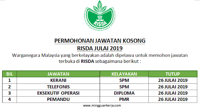 Jawatan kosong risda 2019. Berikut merupakan senarai jawatan kosong kerajaan part time freelance full time internship terkini. Jawatan kosong risda 2019. Konduktor ladang tg3 3. Permohonan adalah dipelawa kepada warganegara malaysia yang berkelayakan dan berumur tidak kurang dari 18 tahun pada tarikh tutup iklan untuk mengisi kekosongan jawatan berikut.