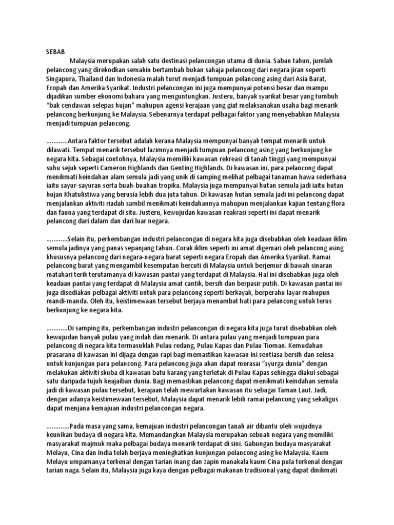 Saya menggunakan pelbagai sumber dan karangan karangan nukilan murid guru lain sebagai rujukan sumber dinyatakan di akhir karangan. Potential impact and challenges mohamad zaki ahmad johan afendi ibrahim dan hood mohd. Dalam konteks dunia hari ini pelancongan merupakan salah satu kegiatan ekonomi dan sosial yang semakin penting. Antara kepentingan ulung industri pelancongan adalah ekonomi.
