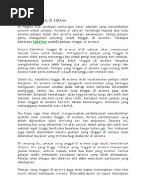 Kebaikan tinggal di asrama sekolah. Dalam sekolah asrama tujuan difasilitasinya asrama adalah untuk memudahkan memberikan pendidikan karakter bagi para peserta. Sedangkan beberapa kerugian dari sekolah di boarding school atau sekolah dengan asrama yang lain adalah. Lebih masa untuk belajar di sekolah asrama terdapat waktu yang telah dikhaskan untuk belajar di waktu petang dan malam. Melalui pengalaman di sekolah asrama kebanyakan dari mereka tiada masalah untuk menyesuaikan diri dengan suasana pembelajaran di ipt.