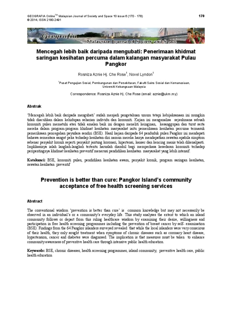 Mencegah lebih baik daripada mengubati karangan. Che rose 1 novel lyndon 1 1pusat pengajian sosial pembangunan dan persekitaran fakulti sains sosial dan kemanusiaan universiti kebangsaan malaysia correspondence. Selain itu masyarakat juga kurang menjaga kebersihan diri dan juga persekitaran. Kalau kita mempunyai tabiat makan yang buruk kita sengaja mengundang penyakit. Dalam syariat islam yang mulia ada sebuah kaidah agung yang banyak dianggap sebelah mata oleh sebagian kaum muslimin ungkapan mencegah itu lebih baik daripada mengobati.