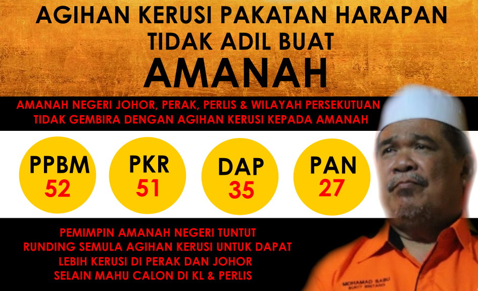 Pembahagian kerusi warisan dipertikaikan. Saya juga terkilan apabila rakan komponen pakatan harapan ph iaitu amanah dan dap tidak mendapat tempat selayaknya walaupun mereka banyak mengorbankan beberapa perkara untuk mendapat perhatian shafie. Fareez 9 mins ago 2 min read. Untuk semenanjung yang mempunyai 165 kerusi bersatu dikhabarkan diperuntukkan 52 kerusi pkr 51 dap 35 dan amanah 27.