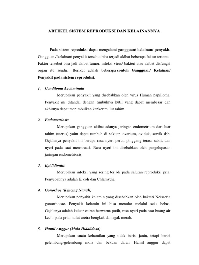 Herpes genitalis penyakit herpes genitalis disebabkan oleh virus herpes simpleks. Namun beberapa penyakit akibat virus terkadang perlu diobati dengan obat antivirus. Kelainan dan penyakit pada sistem reproduksi dapat disebabkan oleh bakteri jamur maupun virus kelainan dan penyakit ini dapat ditularkan dari orang tua yang terinfeksi ke pada anaknya akibattransfusi darah yang terinfeksi ditularkan akibat gaya hidup yang tidak baik seperti gaya hidup seks bebas dan.
