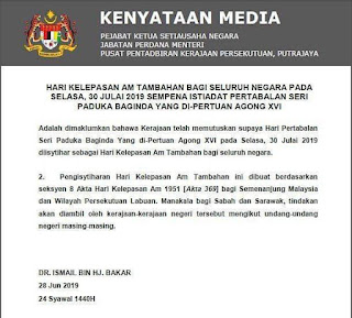 30 july 2019 declared public holiday in conjunction with the coronation of the yang di pertuan agong al sultan abdullah ri ayatuddin al mustafa billah shah. Public complaints bureau malaysia sabah electricity sdn. Click for official malaysia public holidays 2020 cuti umum 2020. 19 may 2019 sunday.