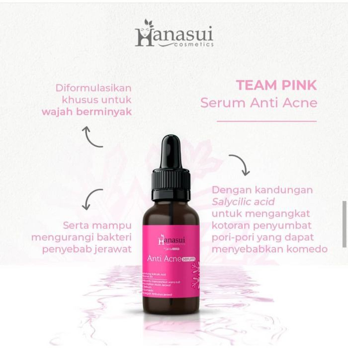 Manfaat serum vitamin c. Jerawat pada wajah tetap memerlukan serum yang dapat diaplikasikan pada wajah karena manfaat dari serum itu sendiri untuk menutrisi kulit saat malam hari. Diformulasikan dengan bahan bahan tambahan water soluble sehingga tidak menimbulkan komedo tidak lengket dan melembabkan kulit muka. Hanasui serum anti acne pink mengandung kombinasi bahan bakteriostatika dan bahan bakterisida yang efektif untuk mencegah dan mengurangi jerawat.